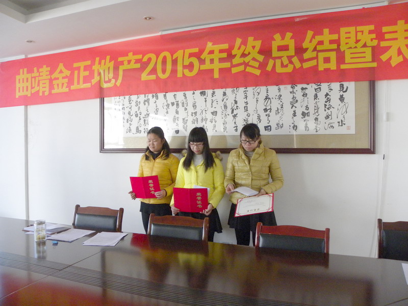 2016129,曲靖金正地產(chǎn)2015年終總結(jié)暨表彰大會(huì)在公司會(huì)議室順利召開。大會(huì)全面總結(jié)了曲靖金正集團(tuán)在2015全年的各方面工作情況,對(duì)做得不足的方面也做了總結(jié)分析,同時(shí)明確了集團(tuán)下一年度的工作方向和重點(diǎn)。針對(duì)各部門先進(jìn)員工進(jìn)行了分享和表彰,同時(shí)對(duì)公司優(yōu)秀個(gè)人工作總結(jié)進(jìn)行了分享。