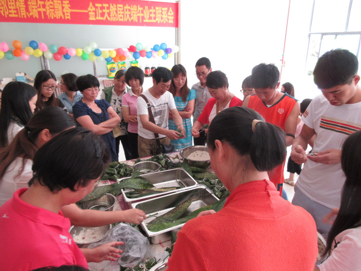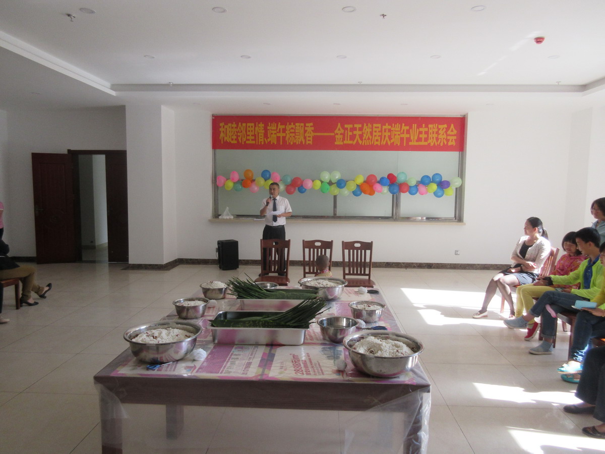 •     為繼承和發(fā)揚民族優(yōu)秀傳統(tǒng)文化,營造和諧社區(qū)氛圍,增強小區(qū)業(yè)主鄰里間感情,豐富小區(qū)業(yè)主業(yè)余文化生活,201668,由金正天然居物業(yè)管理處和天然居銷售部共同主辦、藍天琴行協(xié)辦的天然居慶端午業(yè)主聯(lián)系暨包粽子大賽在天然居小區(qū)食堂成功舉辦,經(jīng)過前期籌備,活動當天共有40余戶業(yè)主和意向客戶參與包粽子比賽,實際到場100余人。